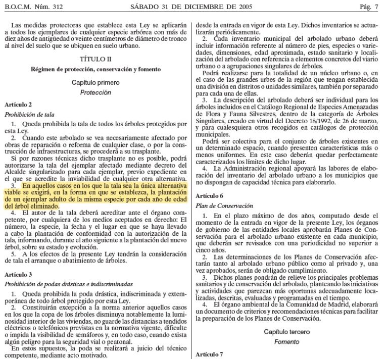 Depende mucho del ayuntamiento. Muchos siguen la norma de plantar un árbol adulto por cada año del árbol eliminado, pero no siempre es así.